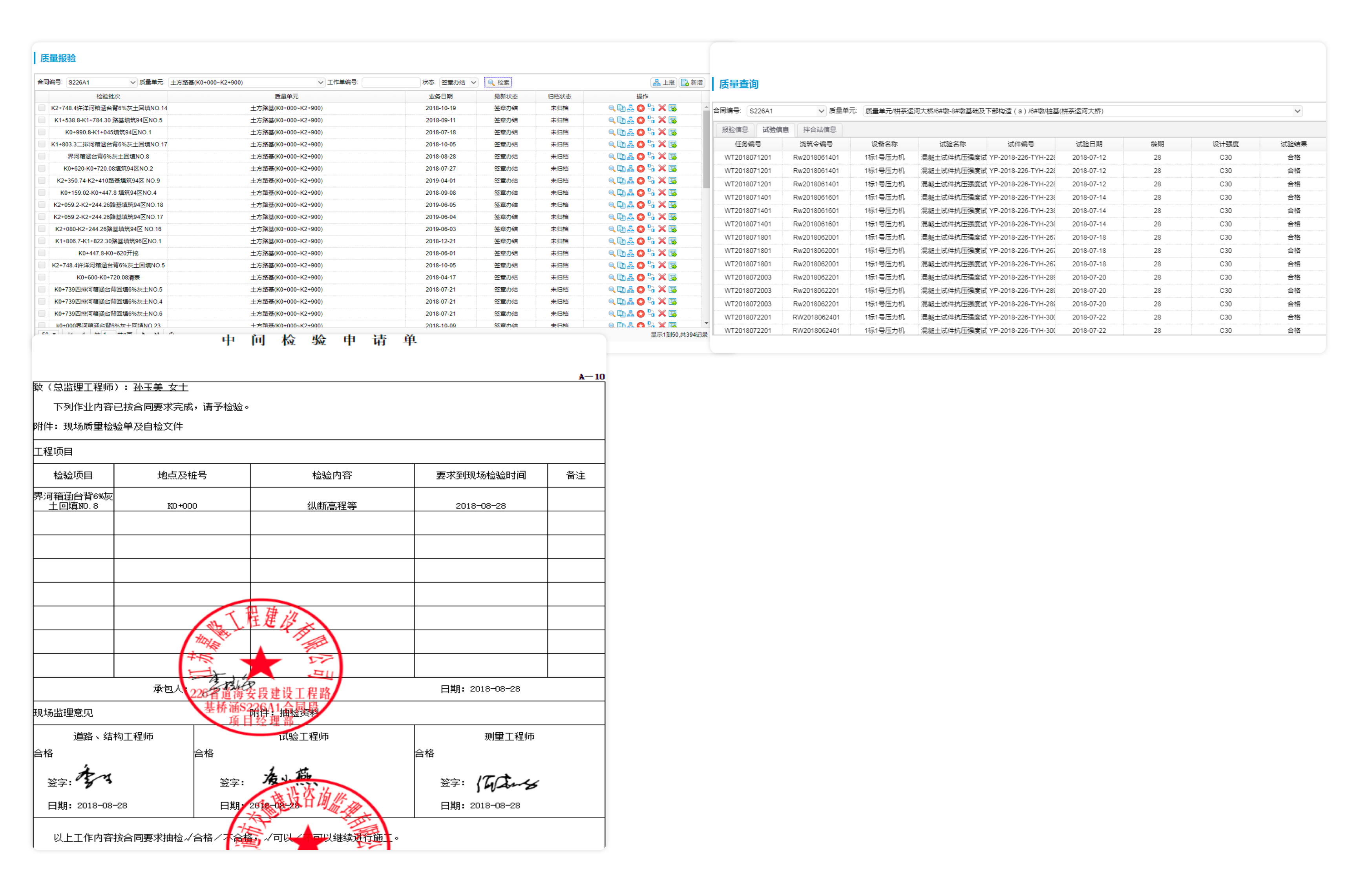 質(zhì)量管理業(yè)務(wù)全鏈打通,質(zhì)量報(bào)驗(yàn)關(guān)聯(lián)拌合生產(chǎn)、試驗(yàn)檢測(cè)、張拉壓漿等全面數(shù)字化。