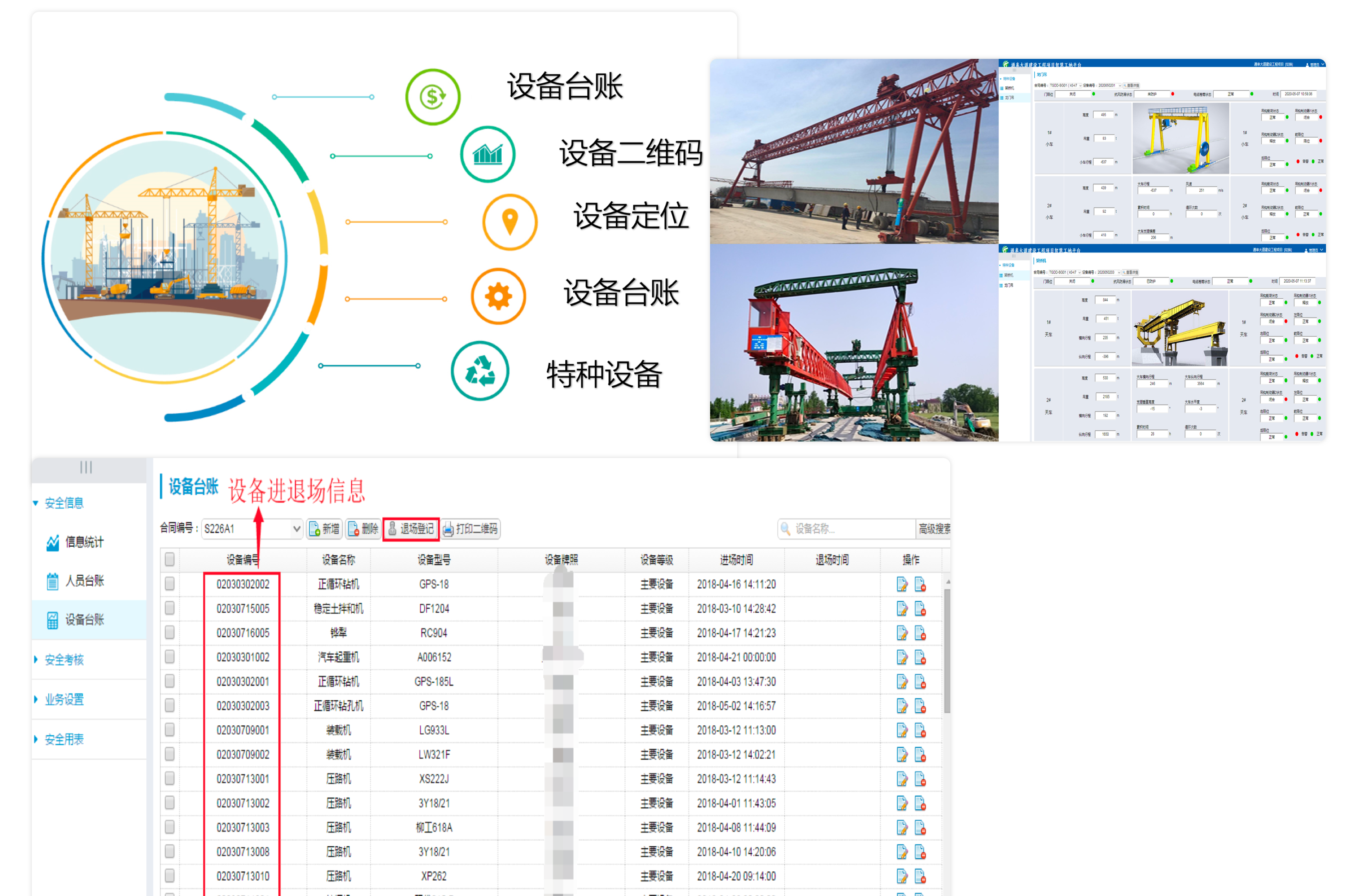 在項(xiàng)目施工過程中會(huì)有大量設(shè)備的使用,針對施工設(shè)備進(jìn)行進(jìn)出場登記,能有效的了解和掌握項(xiàng)目設(shè)備投入情況,同時(shí)對特種
